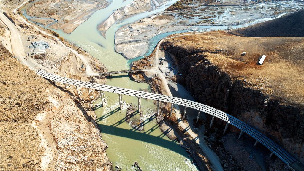 这是2020年10月27日在吉尔吉斯斯坦拍摄的新北南公路二期工程施工现场。新华社发(中国路桥公司供图)