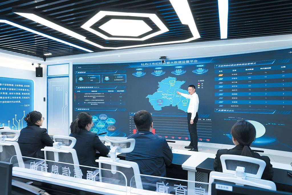黑龙江省牡丹江市纪委监委深化大数据信息化实践应用,探索平台引领、数据先行、系统施治工作路径,构建市县乡三级智能化监督体系,以技术手段助力系统性整治民生领域突出问题。图为近日,该市纪委监委工作人员在大数据办案中心研究优化平台模块。马广莉 摄