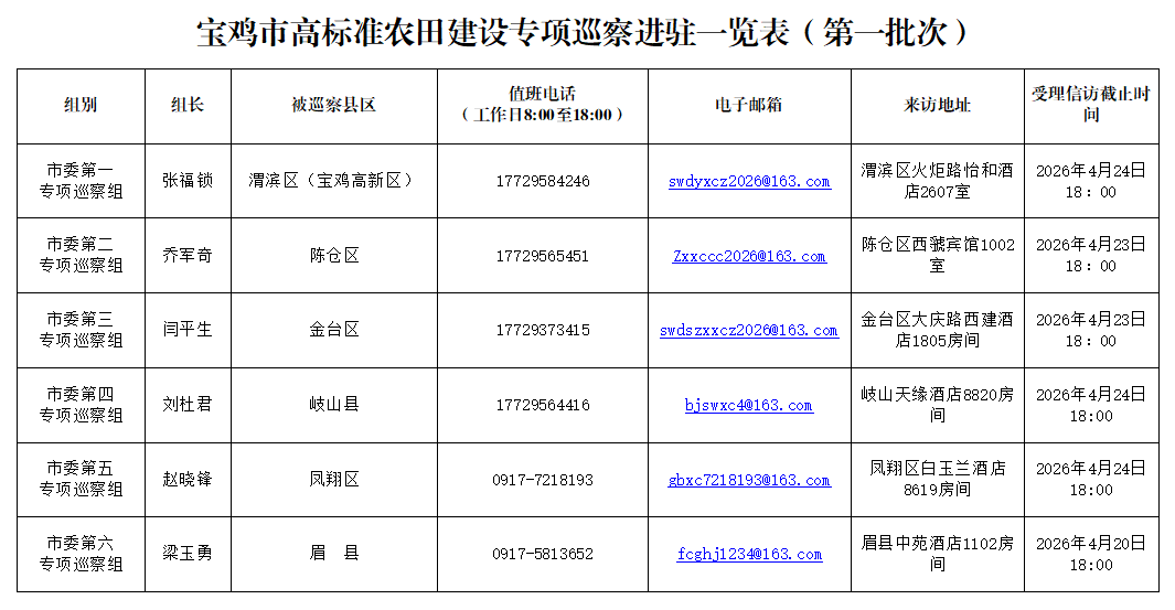 附:宝鸡市高标准农田建设专项巡察进驻一览表(第一批次)